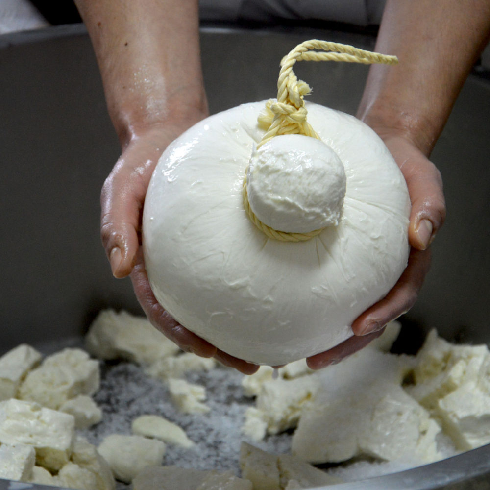 Formaggi a pasta filata, prodotto dal latte vaccino del proprio allevamento di vacche delle razze Pezzata Rossa, Frisona, Bruna Alpina e Marchigiana.
